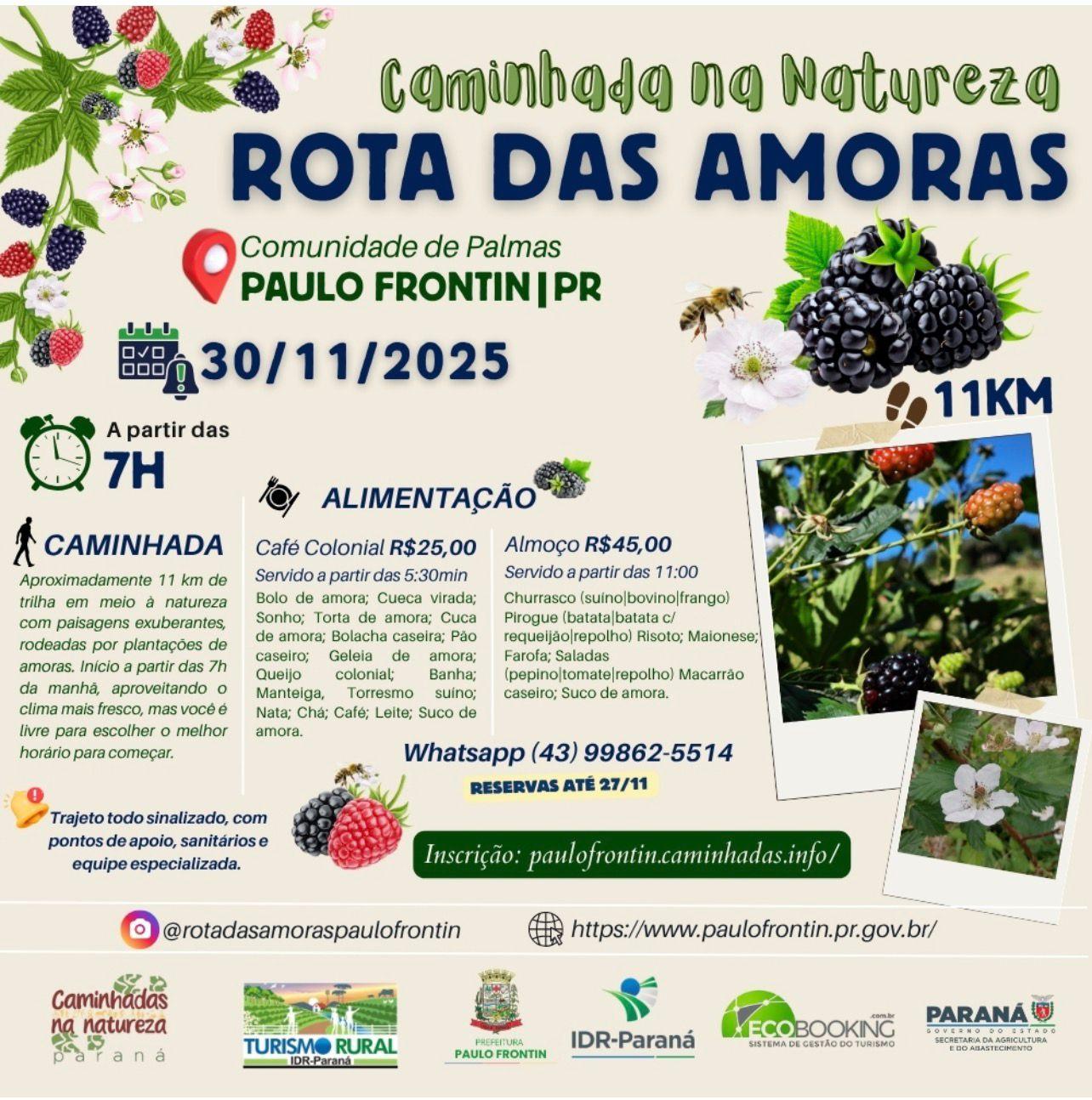 Em entrevista ao repórter Juliano Luz, a assessora Rafaela Petela explicou que a Rota das Amoras faz parte do programa Caminhadas na Natureza, desenvolvido em parceria com o IDR-Paraná e com as comunidades locais. O projeto tem como objetivo promover o turismo rural e valorizar a produção agrícola do município, em especial o cultivo de amoras, produto marcante da região.